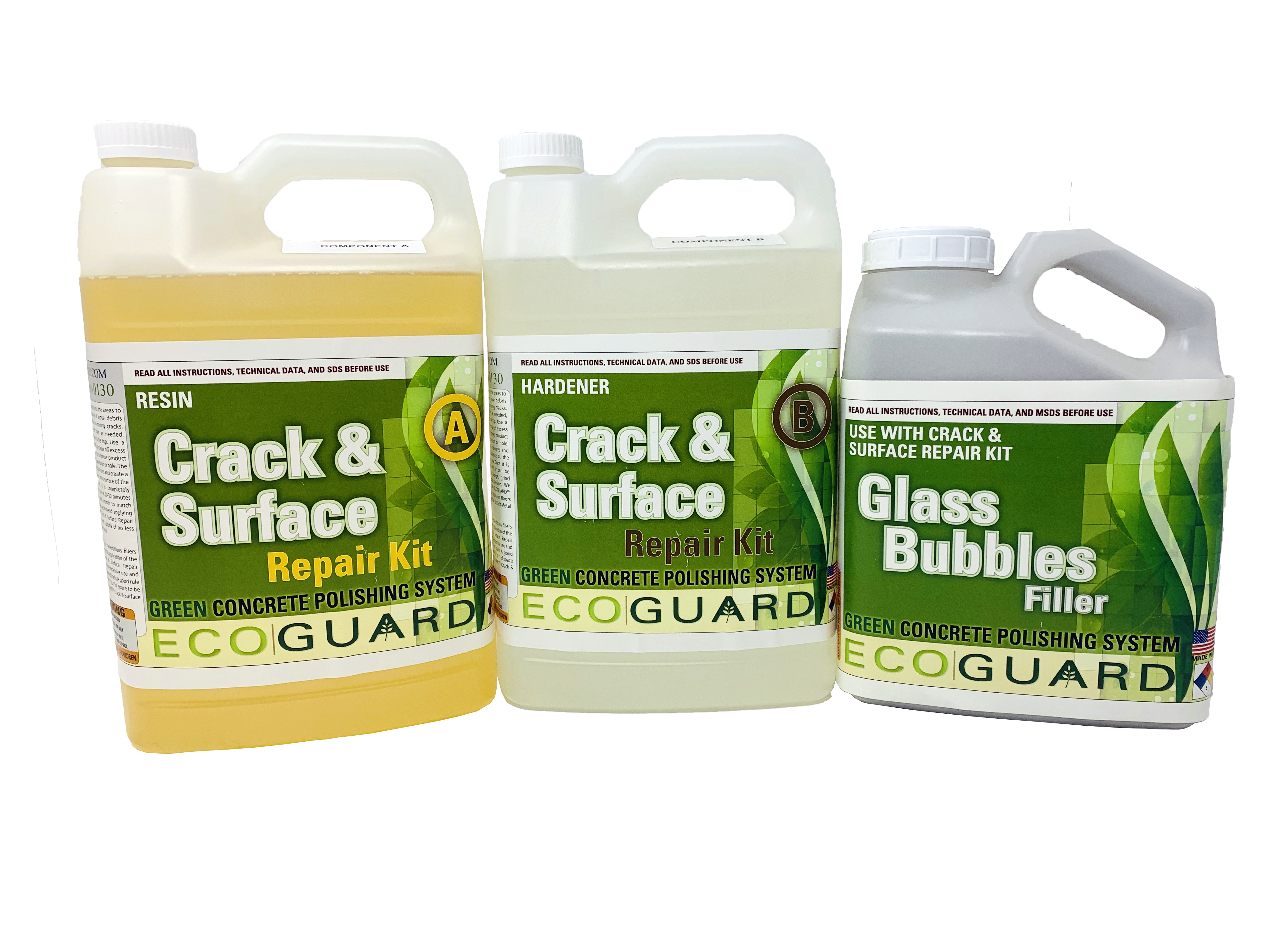 ECOGUARD Crack repair system is a two part (A & B) resinous compound , which effectively repairs non-moving cracks and surface damage using recycled glass spheres and recollected cement dust from grinding activity.